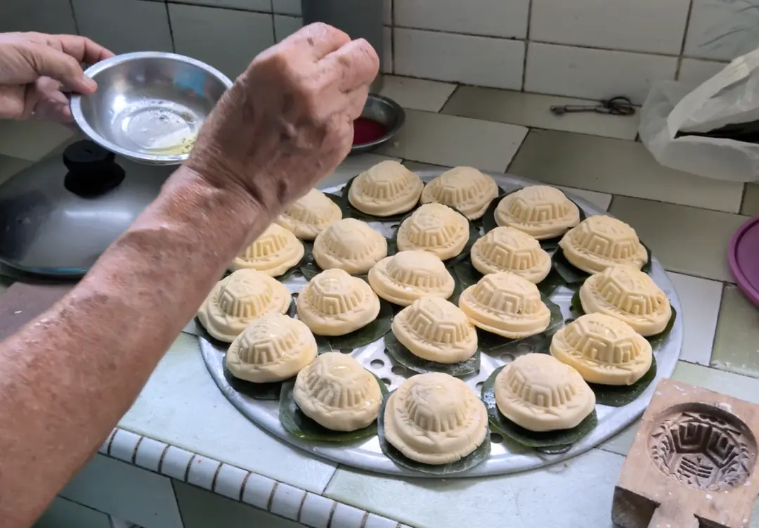 Before steaming, brush some vegetable oil on the Ang Ku to prevent them from sticking to one another.
