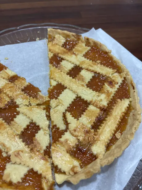 The local apricot jam is the most common jam used in these tarts. The pastry is crumbly, crisp and sweet and is a perfect match for the tartness of the jam.