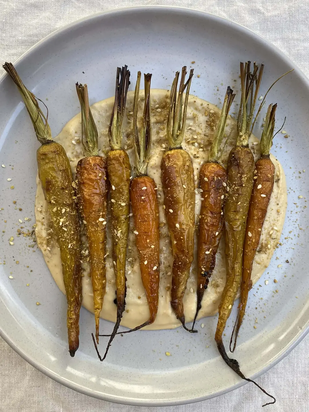 Carrots are an excellent source of carotenoids (such as beta-carotene) which the body converts into active vitamin A. Since vitamin A is fat-soluble, consuming carrots with healthy fats like olive oil or tahini can enhance this absorption and conversion. Another important mineral is iron, as low iron levels can impair the body’s ability to make this conversion. I like to pair this side dish with lamb or steak, not only because the flavours complement each other but also to support this nutrient conversion.