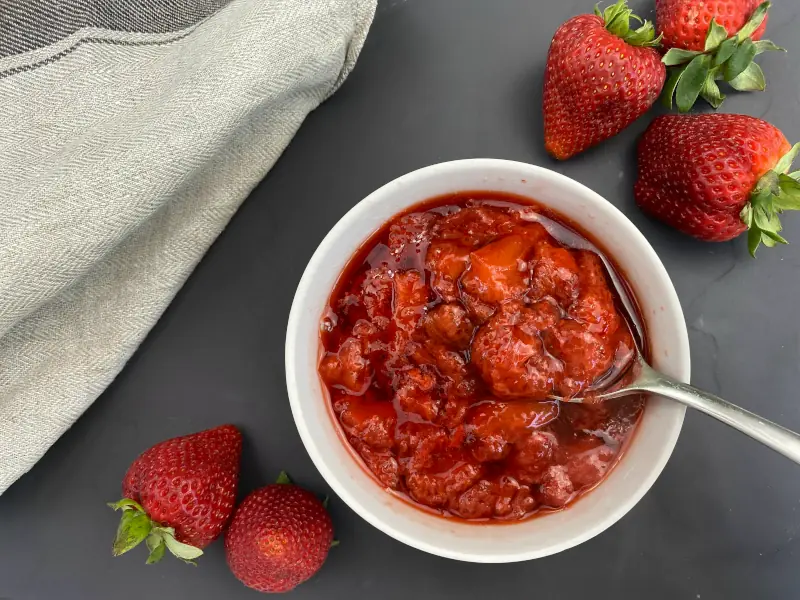 This fresh strawberry coulis is beautiful on cereal, natural yoghurt or in desserts. The fresh strawberries and lemon make it bright and tangy.