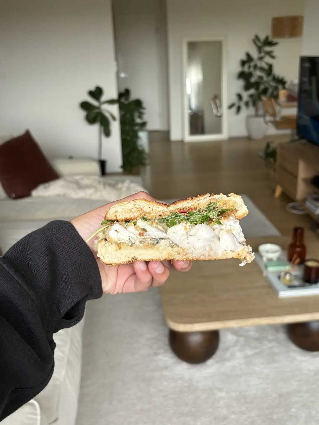Assemble the burger: Place lettuce or rocket onto the bottom half of the toasted , top with the crispy fish fillet, spoon generous tartare sauce over, and finish with the top bun. Serve immediately.